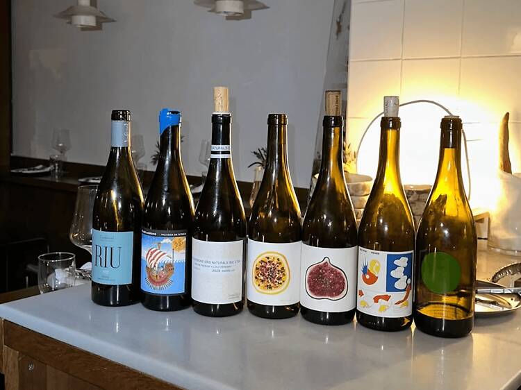 Quizá la fórmula más repetida de los últimos años en Barcelona es “platillos para compartir y vinos naturales”. Como siempre, hay lugares que la aplican sin ningún criterio y otros que saben perfectamente lo que hacen. Fugaz es uno de estos últimos. Abierto a principios de 2025, la propuesta gastronómica de este local íntimo y de aires vintage es fugaz, pero se recuerda con agrado. Es decir, el puñado de opciones para picar, los ocho entrantes y los cinco principales —en crudo, pasados por la brasa o asados, con una despensa que mira al mundo— cambian según la inspiración de la cocina y la temporada. Los raviolis de langostino, dashi de cebolla y daikon encurtido, y el rodaballo a la brasa con puerros confitados y su puré son un par de ejemplos.