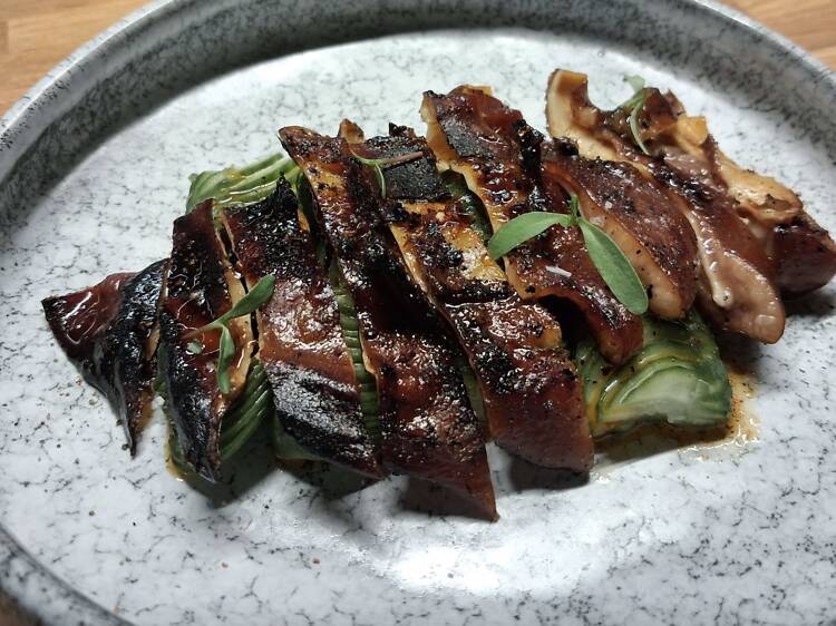 ¿Y el plato de la carta que mejor lo define? "La oreja de cerdo con pepino encurtido. Es memoria pura: me recuerda cuando vivía en Manchuria con mi abuelo y salíamos fuera a comer platos como este. Y también refleja mi formación culinaria". La receta tradicional se come fría, pero él la reinventa: primero cocina la oreja y luego la pasa por la brasa.