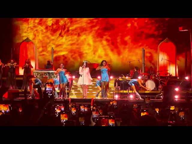 Quizás la actuación del día 12 de abril en el desierto de California pueda darnos pistas sobre cómo será el concierto de Barcelona, pero parece bastante improbable que la neoyorquina haga su entrada en motocicleta o que invite a cantar a Billie Eilish como hizo en el Empire Polo Club de Indio. Y no, no faltaron canciones tan conocidas de su repertorio como 'Born to die', 'Summertime sadness' y 'Video games', el 'hit' con el que se dio a conocer, además de algunas de su trabajo más reciente 'Did you know that there's en tunnel under Ocean's Blvd' (2023).