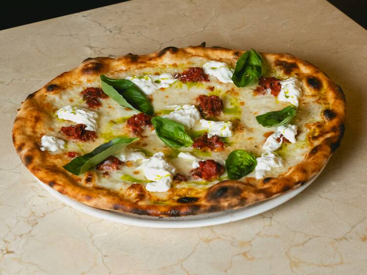 En realidad, todas las pizzas de la carta son variaciones de recetas clásicas repensadas a su manera y con el km 0 en mente. Una sugestiva pizza de cebolla de Figueres caramelizada es su aproximación a la pizza argentina fugazzeta, y su versión de la Salsiccia e friarielli, de salchicha y grelos napolitanos, es una pizza de butifarra de producción propia, con hinojo y escarola.
