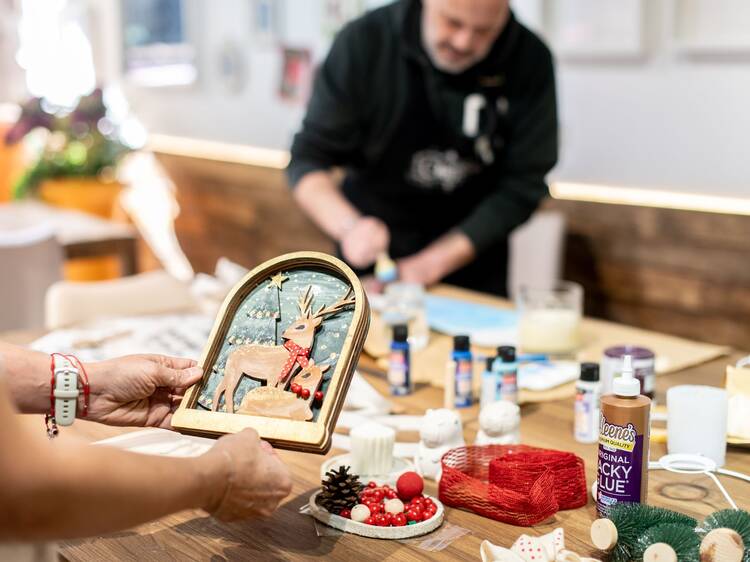 Entre noviembre y hasta la Navidad, se han preparado una variedad de talleres con temática festiva, como la creación de coronas de Navidad o la decoración de bolas de Navidad, al igual que otras propuestas inspiradas en estas fechas. Podréis elegir una pieza de base en la tienda, entre miles de opciones, como cerámica, madera, cristal, papel o textiles (bolsos, chaquetas o tote bags), y elegir qué técnica vais a desarrollar. Igualmente, podéis traer vuestra propia pieza, y darle una segunda vida, y adquirir los materiales para customizarlo a su gusto.