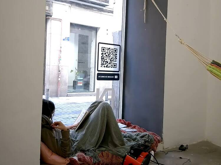 De 24 años, Bustos, que se encuentra sin móvil dentro del escaparate, también está realizando una variedad de 'performances', los jueves, viernes y sábados a las 20.00 h. Ante la imposibilidad de cocinar, su hogar temporal cuenta con una variedad de productos enlatados y de bote, como verduras y legumbres; cuatro cuadros, pintados a lo largo de estas primeras jornadas; un colchón sin somier, y libros como 'Piensa como un artista' de Will Gompertz o 'El nombre del viento' de Patrick Rothfuss.