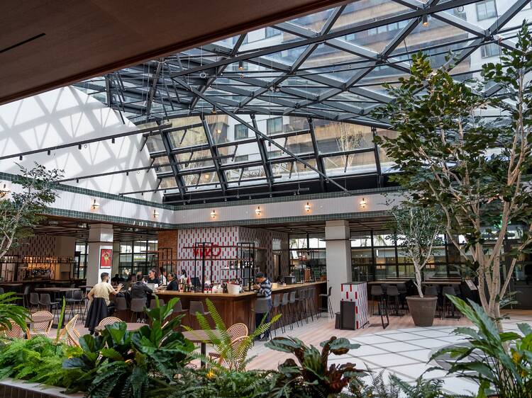La zona de restauración, conocida como 'El Callejón de NUGA', es el corazón de este nuevo concepto, actuando como un nexo de unión entre las distintas áreas. Cuenta con 4.600 metros cuadrados, divididos en dos espacios para crear una experiencia gastronómica diferencial, con una gran plaza interior, coronada por un gran lucernario con restaurantes y comercios, y un espacio exterior que alberga terrazas y la zona de bienestar.