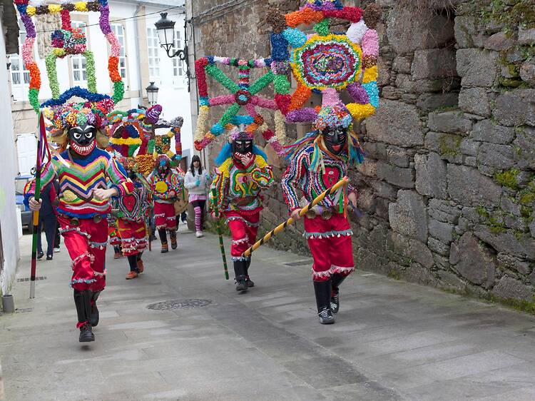 Las mascaradas se volverán a desplegar por la tarde, de 16.00 a 18.00 h, en distintas plazas del centro, como la plaza de Pedro Zerolo, donde se ubica la Casa de Zamora en Madrid; la plaza de Santa Ana, donde podéis encontrar la Agrupación Artística Gallega Rosalía de Castro del Centro Gallego de Madrid, y la plaza de San Ildefonso, hogar del Centro Asturiano de Madrid. Aquí, podréis aprender más sobre los distintos personajes, preguntar todo tipo de cuestiones, descubrir todos los simbolismos y tomaros fotografías.