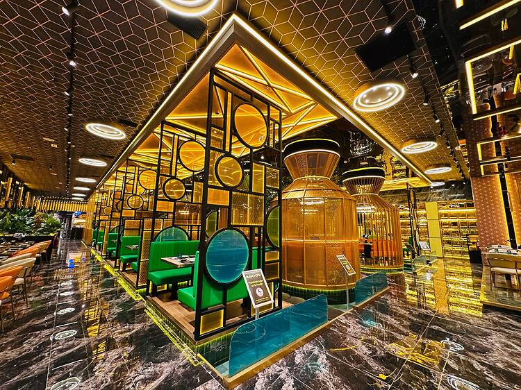 Este nuevo restaurante, que ha abierto sus puertas este verano en el gigantesco centro comercial de Parque Corredor (Torrejón de Ardoz), ha llegado con una innovadora propuesta, pues podrás disfrutar de distintos platos de cocina asiática en una jaula de oro, todo ello flotando sobre un estanque de agua.
