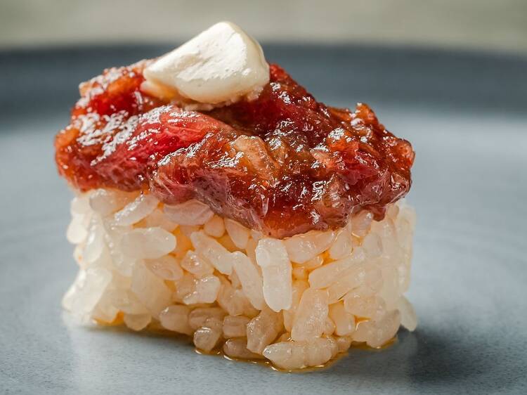 Entre el servicio de comidas y el de cenas, Yong Wu Nagahira ha encontrado un hueco para enseñar a no más de 10 personas por sesión algunas de las claves para cocinar el plato más emblemático cuando pensamos en Japón. ¿O vosotros pensáis antes en ramen? Y entre ellas, la más importante, el tratamiento del arroz. Piedra angular para elaborar luego el nigiri (porcionado, forma y presión adecuada para conseguir un bocado compacto pero ligero, con la proporción correcta entre arroz y cobertura) perfecto en tu cocina. Saber cómo cortar el pescado es importante pero aún lo es más el complicado punto del arroz, la variedad elegida, la mezcla de vinagres... El chef ofrecerá claves para mantener la humedad y evitar que el arroz se apelmace o se reseque, uno de los errores más comunes cuando se empieza.